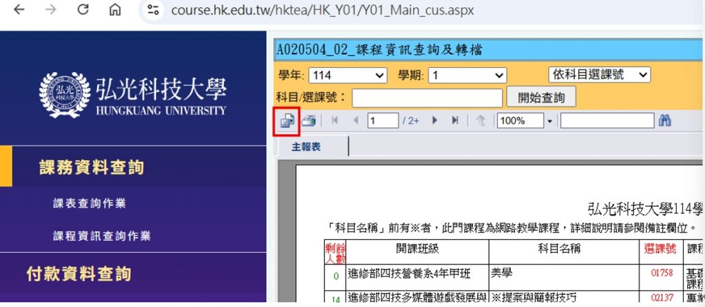 可查到114.2學期本校開設所有課程,要匯出需使用電腦處理